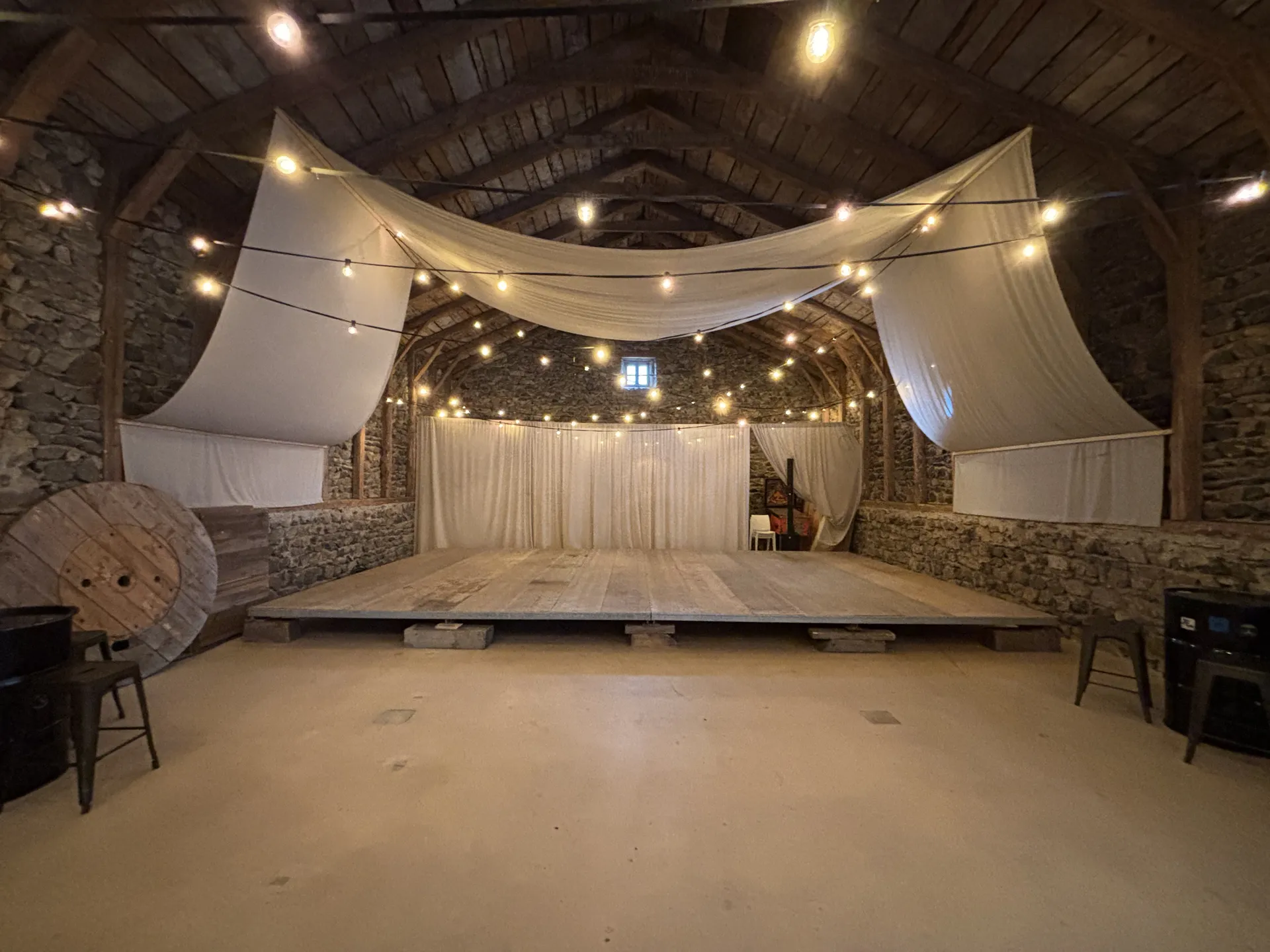 Cette location d'un plancher pour une scène en intérieur au Domaine de la Planche près du Puy en Velay répond aux contraintes techniques d’un spectacle vivant. Un échange avec Velay Réception permet d’étudier les configurations possibles pour vos événements au Puy en Velay et ses alentours.